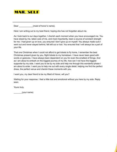 How To Write A Heartfelt Maid Of Honor Proposal Letter To Your Best Friend With Templates Mail To Self